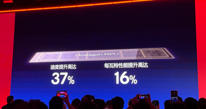 另外这一次的NPU在算力和功耗方面再次进化,可以实现常驻级别的AI应用体验,无需唤醒,就能够实时感受我们设备和用户的状态,做到AI润物细无声,并且还有端侧的AI大语言模型,全新的Hexagon NPU也能带来更快速的响应,实现220Token的性能表现,本地运行大模型也毫无问题。